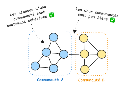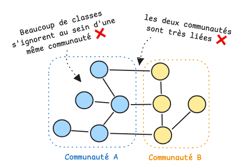 Une communauté dense ne reflète pas forcément un module bien conçu, elle reflète un ensemble de classes qui ont accumulé des raisons communes de changer.