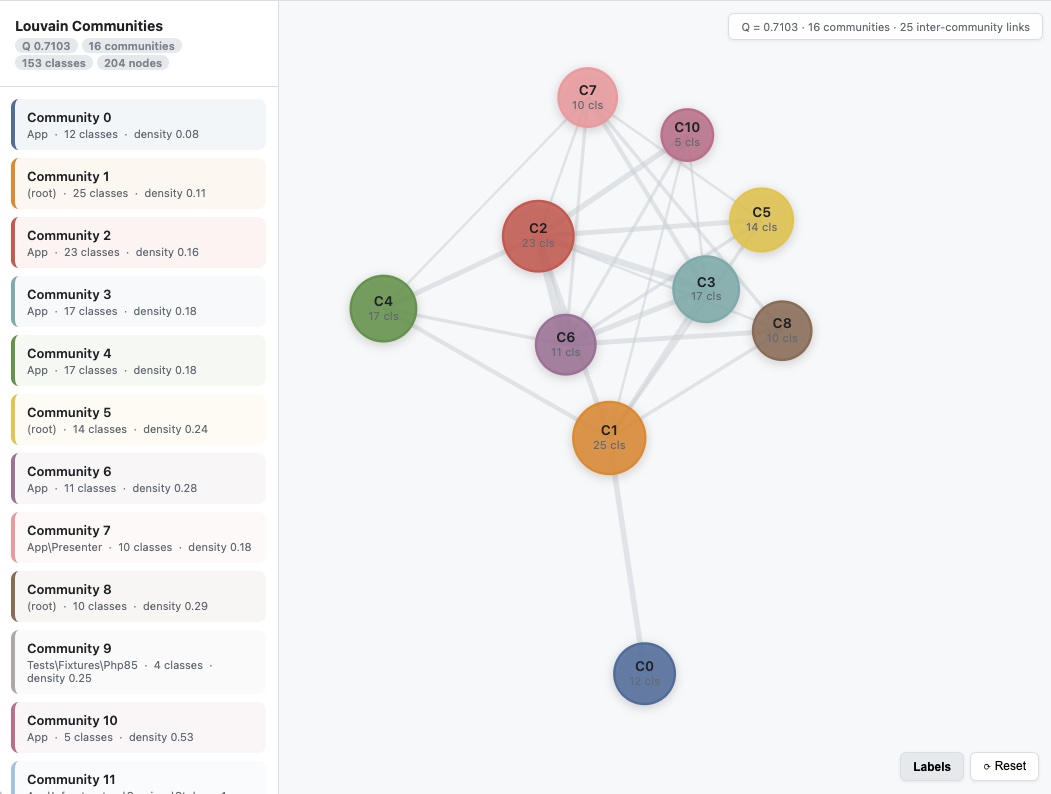 Si vous souhaitez aller plus loin et expérimenter par vous même, il existe des outils accessibles pour visualiser ces communautés sur des projets PHP.