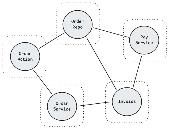 Cependant, une classe OrderRepository isolée de son module sera en revanche un signal plus problématique : est-ce que cette classe a trouvé sa vraie place dans l'architecture ?