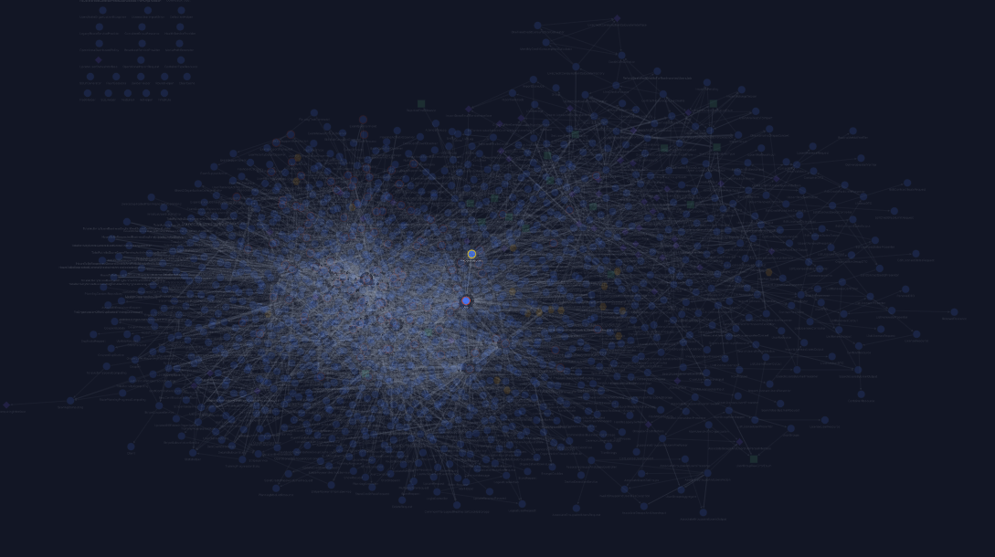 À cette échelle, le graphe devient un enchevêtrement dense dans lequel il est impossible de distinguer ce qui est intentionnel de ce qui est accidentel ... voire même d'y percevoir quoi que ce soit.